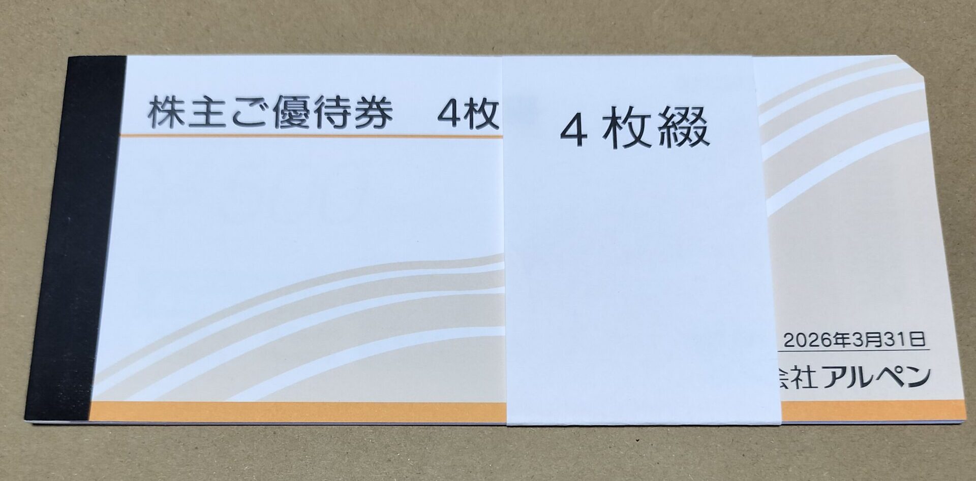 3028 アルペンより届いた株主優待です。こちらは2024年12月31日権利落ち分100株保有で500円×4枚 2000円分…