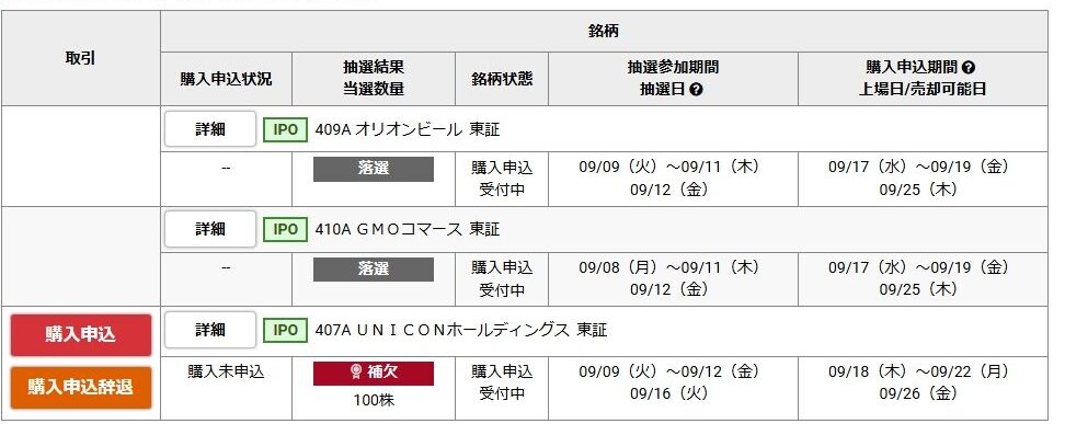 407A UNICONホールディングス補欠当選に申し込みをしていましたが、やはり繰り上げ当選にはなりませんでし…