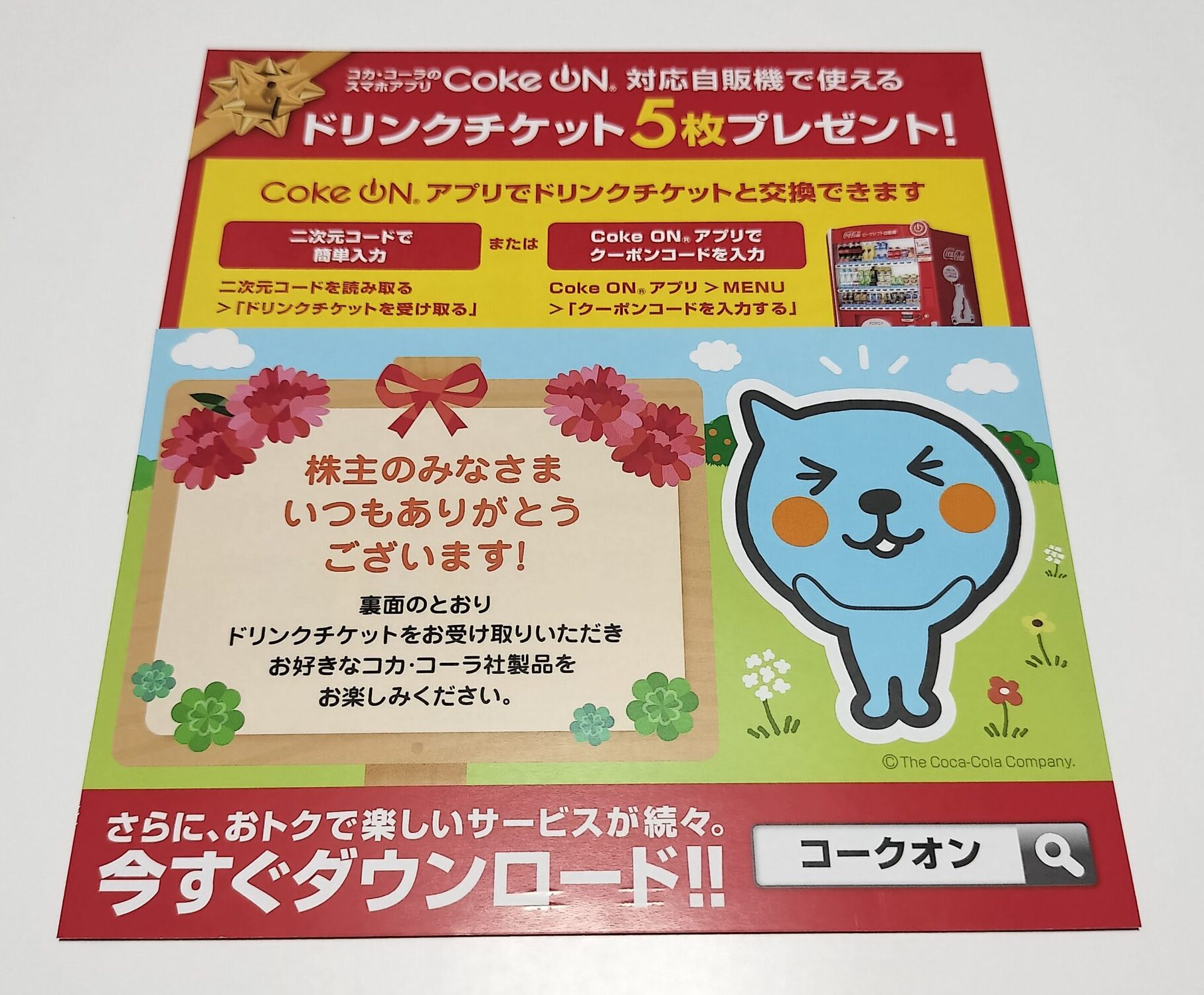 2579 コカ・コーラ ボトラーズジャパンホールディングスから株主優待が届きました。100株保有でCoke ON(R)…