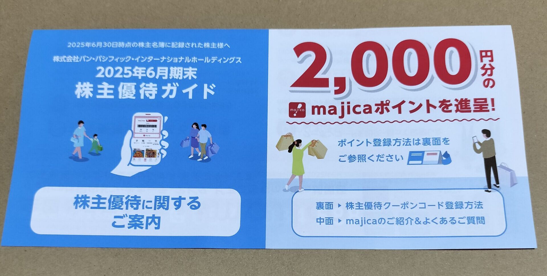 7532 パン・パシフィック・インターナショナルホールディングスから届いた株主優待です。100株保有で電子…