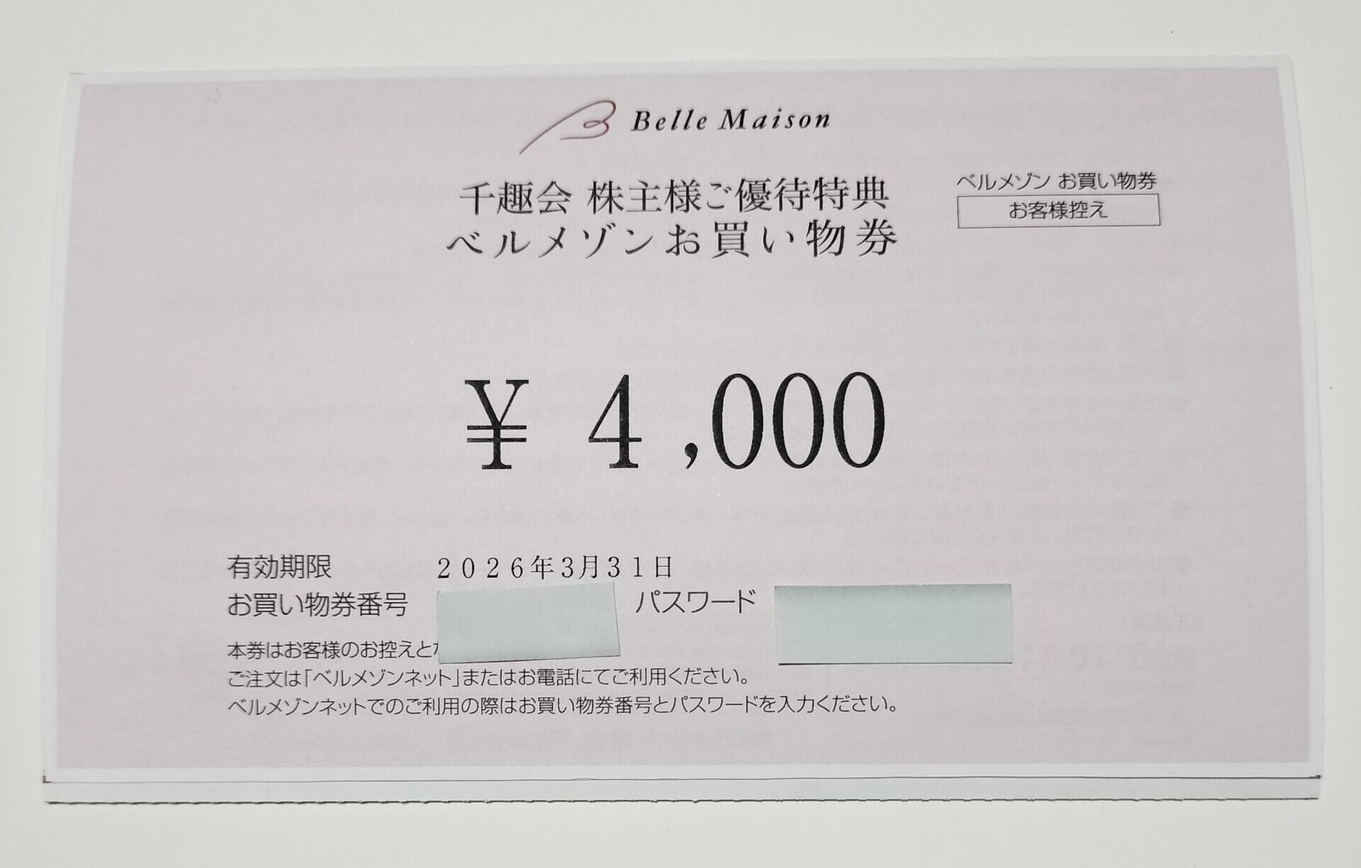 8165 千趣会から届いた株主優待券 4000円分になります。通販サイト ベルメゾンにて優待券を使って買い物を…